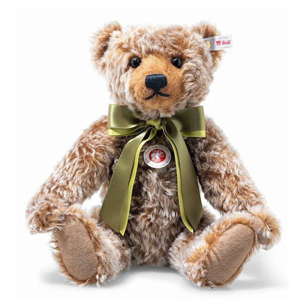 Steiff has produced a special limited edition bear exclusively for the UK since 1989, which is Steiff's longest running limited edition series in the world! He wears green two-tone satin ribbon double bow and has a beautifully embroidered black nose and mouth. This gorgeous bear would make the perfect addition to any collection and is suitable for any special occasion.