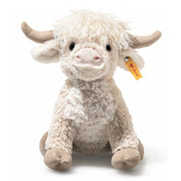 Harper highland cow, is not jointed, made from beige/white colored cuddly soft plush and is not limited. Harper does not come in a box and does not have a certificate of authenticity.