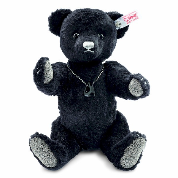 The Onyx Teddy bear, is 25 cm in size, 5-way jointed, made from black colored silk plush and is limited to 2000 pieces.